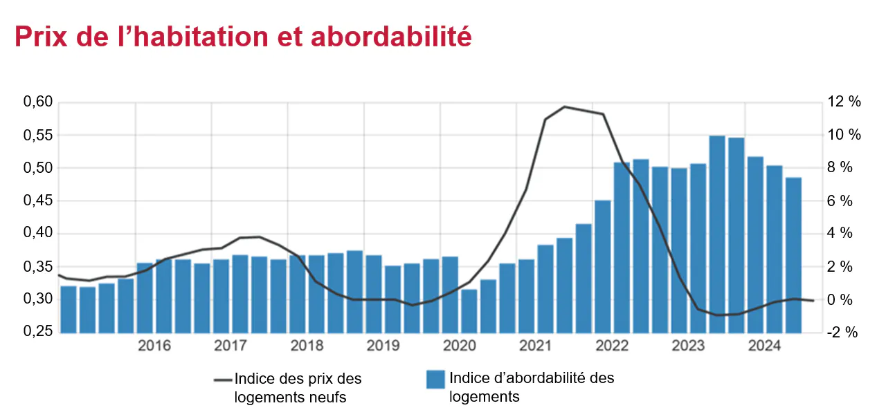 La hausse des coûts de construction, les contraintes liées à la main-d’œuvre, la lourdeur des formalités réglementaires, le zonage et les frais d’aménagement élevés contribuent tous aux goulots d’étranglement de l’offre. La menace imminente des tarifs douaniers américains pourrait ajouter un autre niveau de risque, ce qui limiterait davantage les perspectives du secteur.